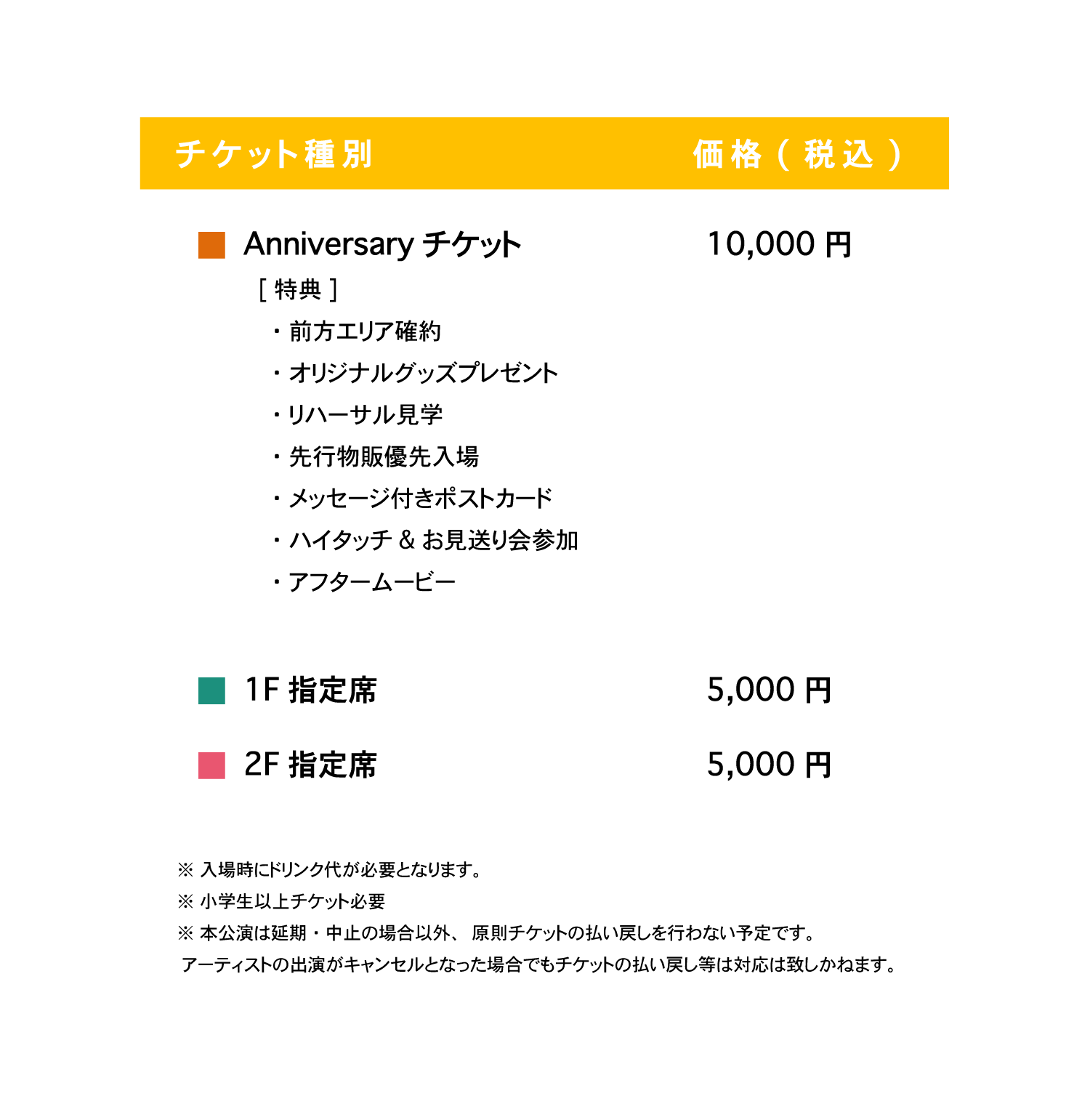 ※ 本公演は延期・中止の場合以外、原則チケットの払い戻しを行いません。アーティストの出演がキャンセルとなった場合でもチケットの払い戻し等は対応は致しかねます。